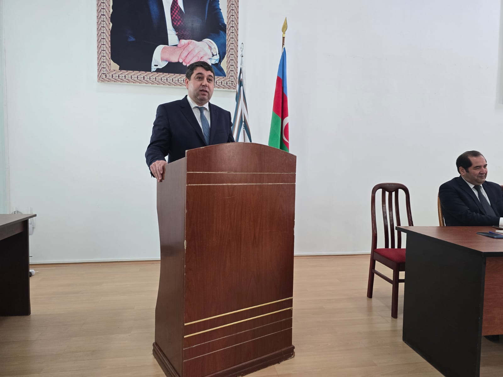 Çıxış edən Hüquq fakültəsinin dekanı, dosent Zaur Əliyev bildirib ki, Ulu Öndər Heydər Əliyev hüquqi dövlət quruculuğunda müstəsna rol oynamışdır. Onun rəhbərliyi ilə dövlət idarəçiliyində qanunçuluq prinsipi möhkəmləndi. Hüquqi sistem təkmilləşdirildi. İnsan hüquqlarının müdafiəsi gücləndirildi. Məhkəmə hakimiyyətinin müstəqilliyi təmin edildi. Hüquq-mühafizə orqanlarının fəaliyyəti effektivləşdirildi. Dövlət və vətəndaş münasibətləri hüquqi əsaslarla tənzimləndi. Bu siyasət ölkədə sabitliyin əsasını təşkil etdi və hüquq, ədalət prinsipləri aparıcı rola malik oldu.Bu gün bu kurs Prezident İlham Əliyevin rəhbərliyi ilə daha da inkişaf etdirilərək uğurla davam etdirilir. Bu gün Qarabağda əldə olunan Zəfər dövlətin gücünü bütün dünyaya göstərdi. Bunun nəticəsidir ki, Azərbaycanın bütün ərazilərində hüquqi sistem tam bərqərar olub.