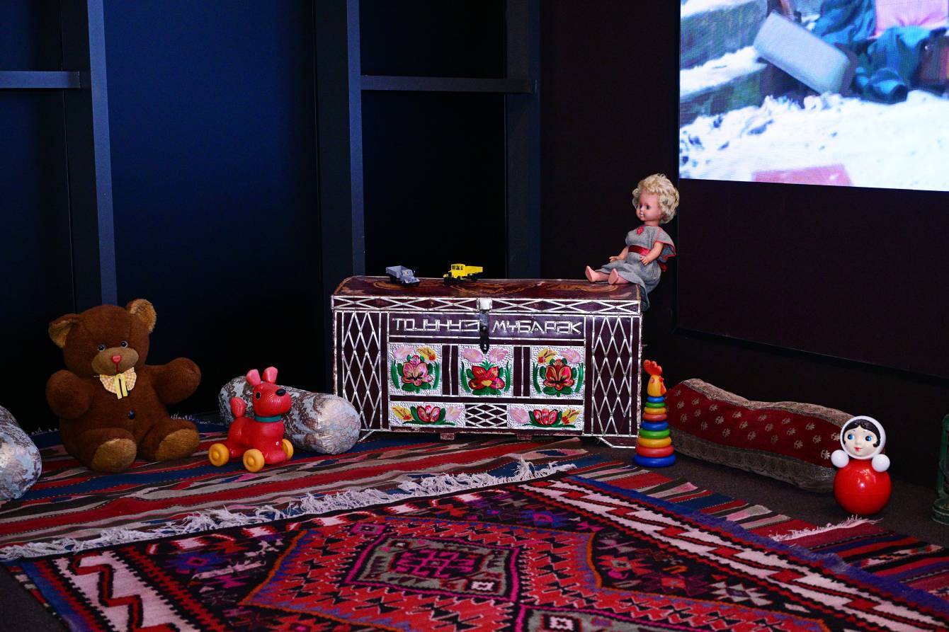 İkinci ekspozisiya zalında Sərxan Hacıyevin “Bir gecənin içində səssiz qalan evlər” instalyasiyası və faciə zamanı tamamilə məhv edilmiş 8 ailənin taleyi, insanlıq əleyhinə yönəlmiş cinayət nəticəsində bir gecədə yarımçıq qalan həyatlar, arzular, sükuta qərq olan uşaq gülüşləri süni intellektlə hazırlanan video vasitəsilə təqdim edilir.