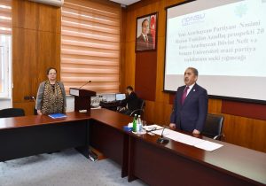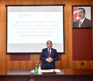 Yerli təşkilatın sədri çıxışında gənclərin partiya sıralarında fəallığının artırılmasının vacibliyini önə çəkən rayon təşkilatının sədri ali təhsil müəssisələrində ideoloji işin gücləndirilməsinin əhəmiyyətini vurğulayıb. O, universitet mühitində milli-mənəvi dəyərlərin təbliği, dövlətçilik ənənələrinin qorunması və tələbələrin vətənpərvərlik ruhunda tərbiyəsinin əsas prioritetlərdən olduğunu diqqətə çatdırıb.