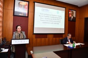 Ərazi partiya təşkilatının sədr müavini Tamilla Naibova ADNSU-nun YAP ərazi partiya təşkilatının illər ərzində gördüyü işlər və fəaliyyəti haqqında məruzə ilə çıxış edib.