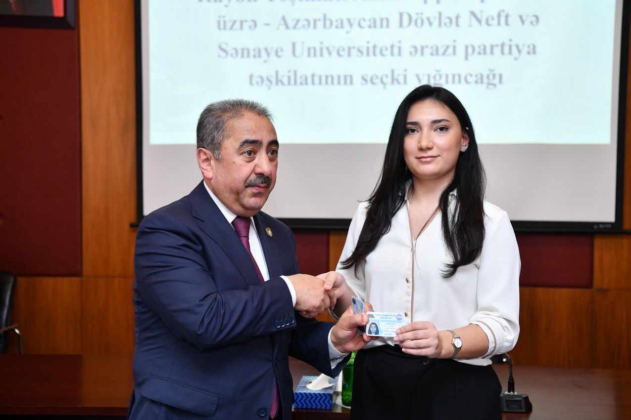 Hesabat-seçki yığıncağında həmçinin, ADNSU-nun Yeni Azərbaycan Partiyasına üzv olan 3 nəfər tələbəsinə partiya biletləri təqdim olunub.